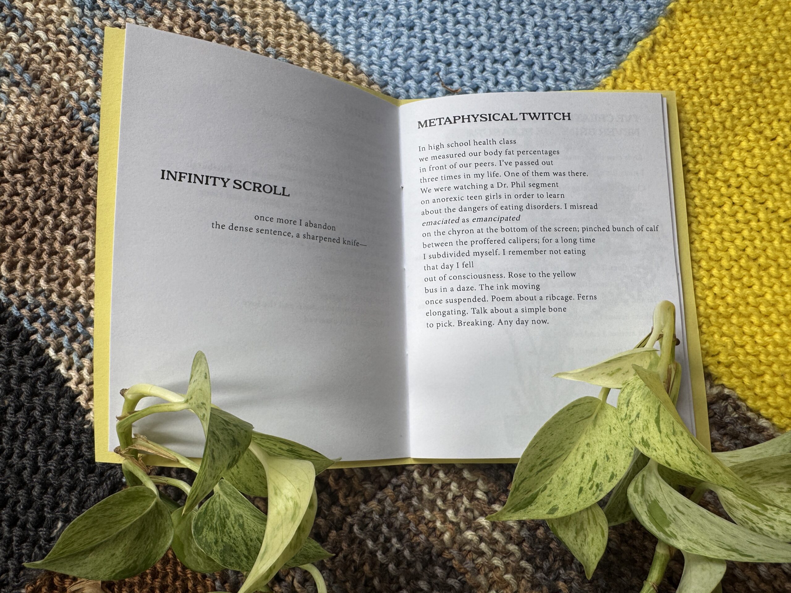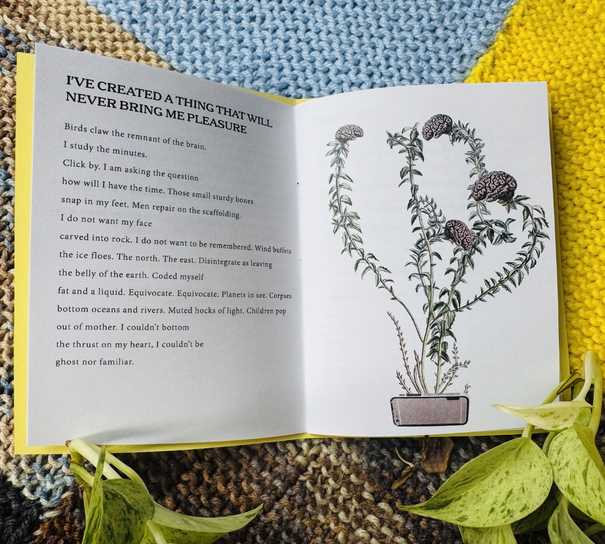 I’ve Created A Thing That Will Never Bring Me Pleasure moves like soft detonations, balancing brutal recollection with slippery metaphysical queries. Think body + memory + newsfeed + grief + joy + longing, stitched into the shape of a question no one asked but everyone feels pressed against the roof of their mouth. Saigh’s voice is elegiac without nostalgia, self-aware without apology. You’ll find bagpipes, Trump t-shirts, Dr. Phil, stillbirths, disappearing mall corridors, and a dog leaking ink. But mostly, you’ll find a speaker circling the very edges of presence—mothers and daughters, lovers and selves, the vast, unanswerable landscape of ethics and embodiment.